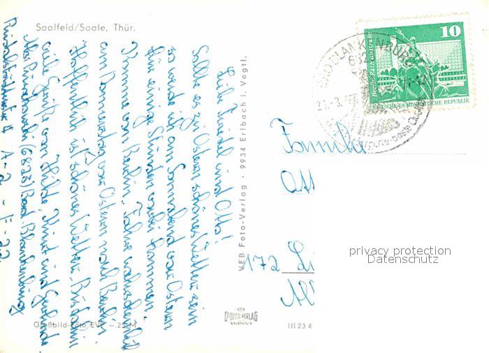 72756324 alte Postkarte Saalfeld Saale Panorama postalisch gelaufen Erhaltung siehe scans [FriedD77] KatCode: 11110016073077