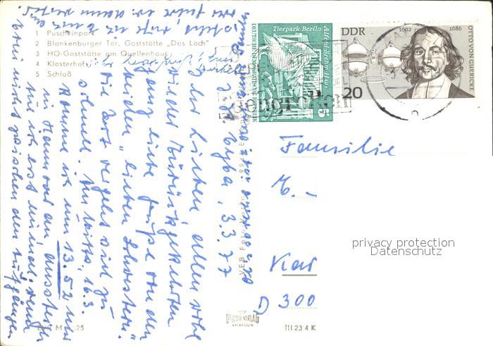 72024247 alte Postkarte Saalfeld Saale Puschkinpark Blankenburger Tor Gaststaette Das Loch HO Gaststaette Klosterhof Schloss postalisch gelaufen Erhaltung siehe scans KatCode: 11110016073077