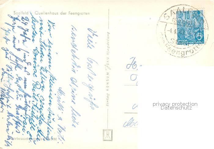 73771026 alte Postkarte Saalfeld Saale Quellenhaus der Feengrotten postalisch gelaufen Erhaltung siehe scans [WerneD78] KatCode: 11110016073077