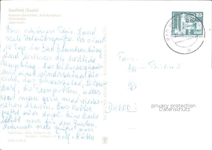 72583351 alte Postkarte Saalfeld Saale Restaurant Kulmberghaus postalisch gelaufen Erhaltung siehe scans [LiesaD40] KatCode: 11110016073077