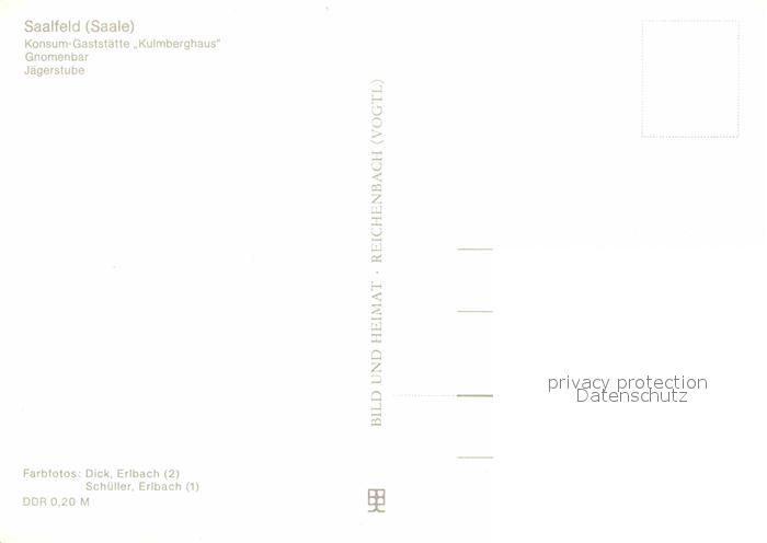 72841645 Saalfeld Saale Restaurant Kulmberghaus Gnomenbar Jaegerstube postalisch nicht gelaufen Erhaltung siehe scans [LiesaD40] KatCode: 11110016073077