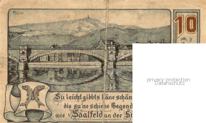 73770108 Saalfeld Saale Saaltor Saalebruecke Zehn Pfennig Gutschein postalisch nicht gelaufen Notgeldschein (keine Postkarte) Erhaltung siehe scans [WerneD78] Notgeldschein (keine Postkarte) Wern Katcode 11110016073077