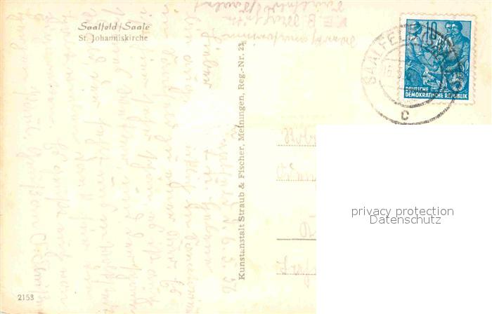 72892620 alte Postkarte Saalfeld Saale Sankt Johanniskirche postalisch gelaufen Erhaltung siehe scans [KathaD81] KatCode: 11110016073077