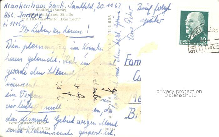 72251149 alte Postkarte Saalfeld Saale Strassenpartie postalisch gelaufen Erhaltung siehe scans KatCode: 11110016073077