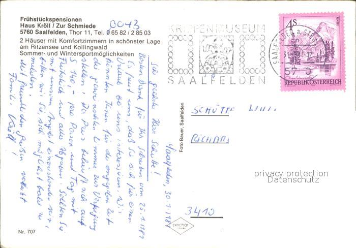 71901794 alte Postkarte Saalfelden Steinerne Meer Pension Kroell postalisch gelaufen Erhaltung siehe scans KatCode: 11390322050619