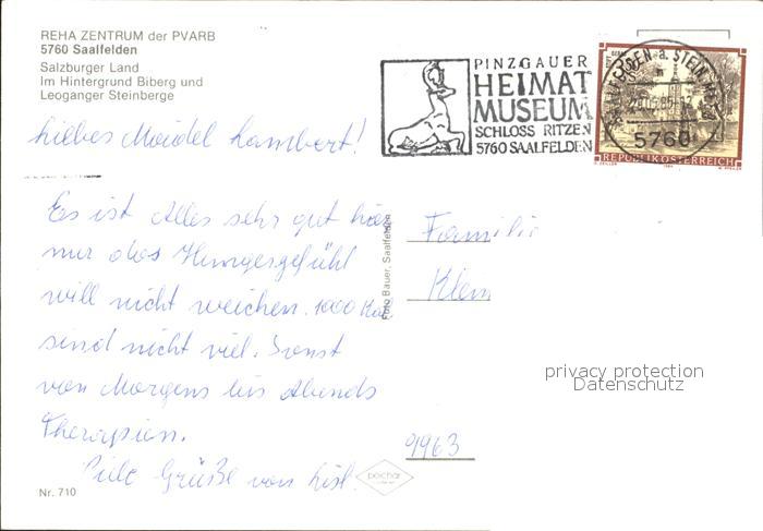 72052593 alte Postkarte Saalfelden Steinerne Meer Reha Zentrum PVARB Biberg Leoganger Steinberge postalisch gelaufen Erhaltung siehe scans KatCode: 11390322050619