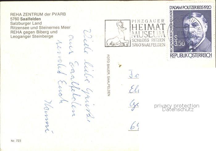 72179966 alte Postkarte Saalfelden Steinerne Meer Reha Zentrum PVARB Ritzensee Biberg Leoganger Steinberge postalisch gelaufen Erhaltung siehe scans KatCode: 11390322050619