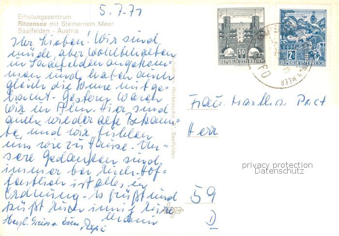 73264660 alte Postkarte Saalfelden Steinernes Meer Erholungszentrum Ritzensee postalisch gelaufen Erhaltung siehe scans [KathaD81] KatCode: 11390322050619