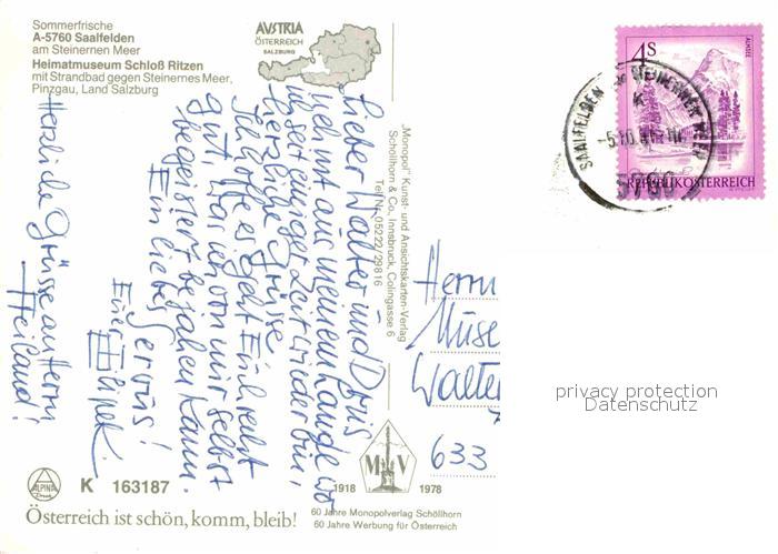 72859778 alte Postkarte Saalfelden Steinernes Meer Heimatmuseum Schloss Ritzen postalisch gelaufen Erhaltung siehe scans [NatalD47] KatCode: 11390322050619