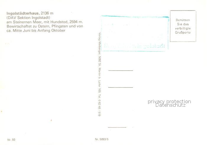 72943138 Saalfelden Steinernes Meer Ingolstaedterhaus postalisch nicht gelaufen Erhaltung siehe scans [KathaD81] KatCode: 11390322050619
