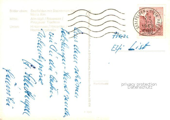73628954 alte Postkarte Saalfelden Steinernes Meer Maria Alm Ritzensee Pinzgauer Trachten Hintermoos Hinterthal Hochkoenigstrasse postalisch gelaufen Erhaltung siehe scans [WerneD78] KatCode: 11390322050619
