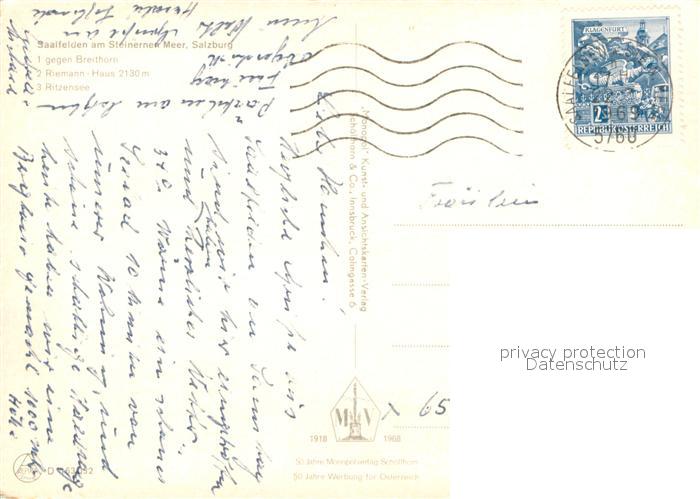 73625972 alte Postkarte Saalfelden Steinernes Meer mit Breithorn Riemann Haus Ritzensee postalisch gelaufen Erhaltung siehe scans [FriedD77] KatCode: 11390322050619