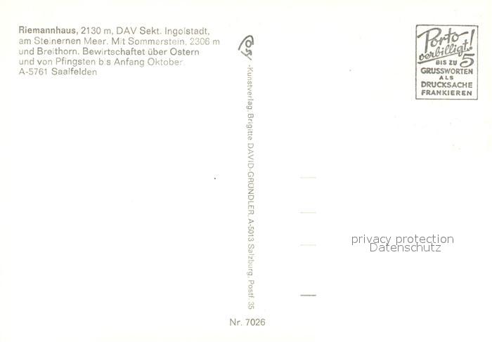 73204131 Saalfelden Steinernes Meer Piemannhaus postalisch nicht gelaufen Erhaltung siehe scans [NatalD47] KatCode: 11390322050619