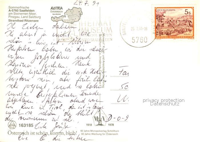 73338987 alte Postkarte Saalfelden Steinernes Meer Pinzgau Strandba Ritzensee postalisch gelaufen Erhaltung siehe scans [LiesaD40] KatCode: 11390322050619