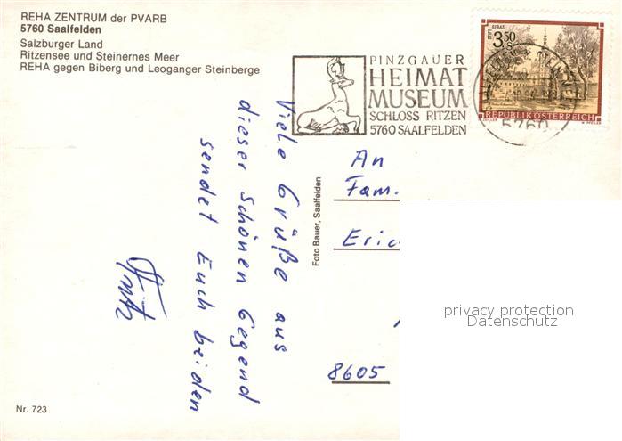 73522947 alte Postkarte Saalfelden Steinernes Meer Rehazentrum der PVARB Seepartie postalisch gelaufen Erhaltung siehe scans [LiesaD40] KatCode: 11390322050619