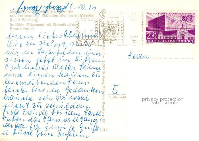 73264661 alte Postkarte Saalfelden Steinernes Meer Ritzensee Strandbad Sportzentrum postalisch gelaufen Erhaltung siehe scans [KathaD81] KatCode: 11390322050619