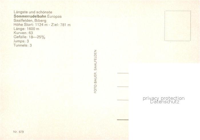 73222014 Saalfelden Steinernes Meer Rolba Run Sommerrodelbahn postalisch nicht gelaufen Erhaltung siehe scans [KathaD81] KatCode: 11390322050619