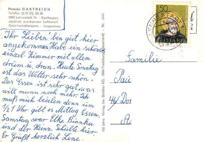 73874961 alte Postkarte Saalhausen Sauerland Gasthof Pension Gastreich Fachwerkhaus Garten postalisch gelaufen Erhaltung siehe scans [FriedD77] KatCode: 11110005966020