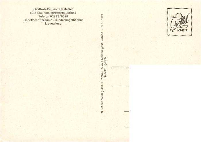 73896434 Saalhausen Sauerland Gasthof Pension Gastreich Gastraum Bar Kaminzimmer Gartenterrasse postalisch nicht gelaufen Erhaltung siehe scans [WerneD78] KatCode: 11110005966020