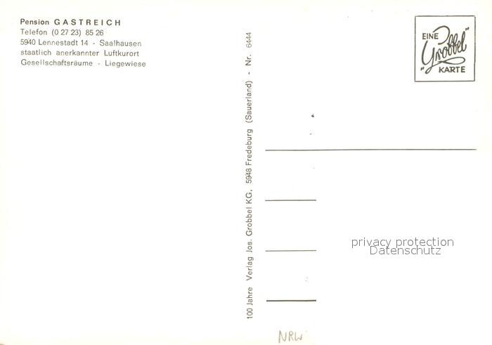 73641832 Saalhausen Sauerland Gasthof Pension Gastreich Gaststube Bar Gartenterrasse Kaminzimmer postalisch nicht gelaufen Erhaltung siehe scans [WerneD78] KatCode: 11110005966020