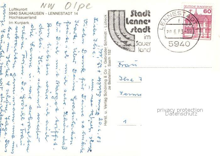 73009165 alte Postkarte Saalhausen Sauerland Im Kurpark postalisch gelaufen Erhaltung siehe scans [WerneD78] KatCode: 11110005966020