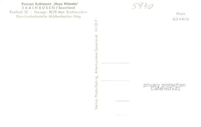 73651523 Saalhausen Sauerland Pension Kuhlmann Haus Hilmeke postalisch nicht gelaufen Erhaltung siehe scans [WerneD78] KatCode: 11110005966020