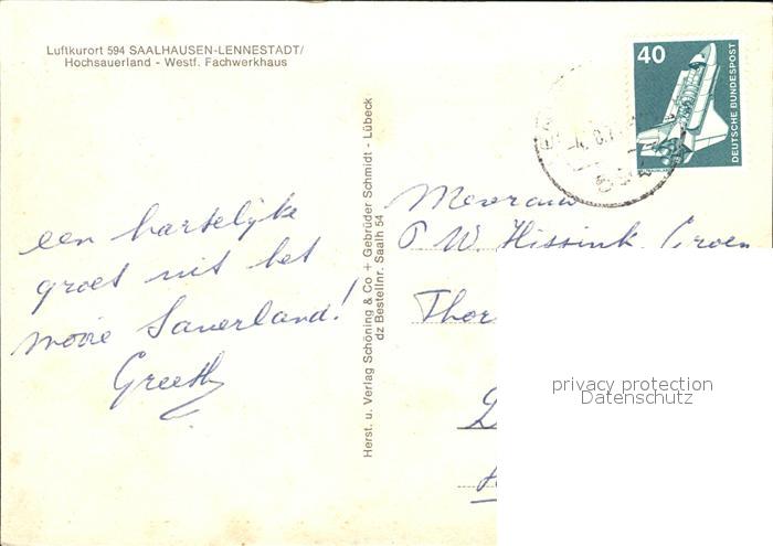 72614995 alte Postkarte Saalhausen Sauerland Westf. Fachwerkhaus postalisch gelaufen Erhaltung siehe scans [NatalD47] KatCode: 11110005966020
