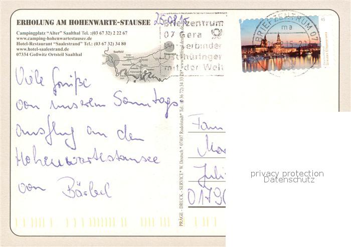 73701568 alte Postkarte Saalthal Bucha Campingplatz Alter am Hohenwartestausee postalisch gelaufen Erhaltung siehe scans [WerneD78] KatCode: 11110016073111