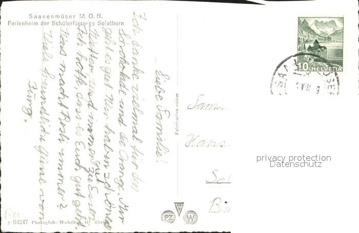 12056976 alte Postkarte Saanenmoeser Zweisimmen Ferienheim Schuelerfuersorge Solothurn postalisch gelaufen Erhaltung siehe scans KatCode: 11470410385266