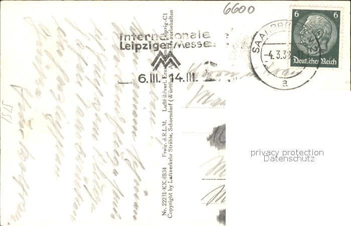 31841204 alte Postkarte Saarbruecken Fliegeraufnahme postalisch gelaufen Erhaltung siehe scans KatCode: 11110010041100