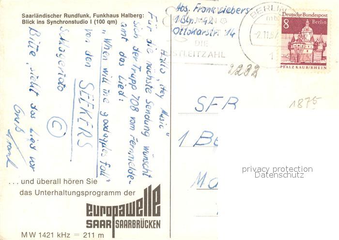 73322473 alte Postkarte Saarbruecken Saalaendischer Rundfunk Funkhaus Halberg Synchronstudio postalisch gelaufen Erhaltung siehe scans [LiesaD40] KatCode: 11110010041100