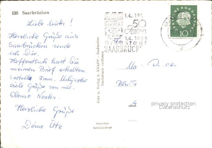 72146243 alte Postkarte SAARBRueCKEN Saarland postalisch gelaufen Erhaltung siehe scans KatCode: 11110010041100