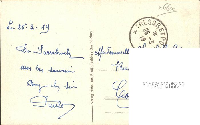 41786473 alte Postkarte SAARBRueCKEN Saarland Alte Bruecke mit Kaiser Wilhelm Denkmal Illustration postalisch gelaufen Feldpost Erhaltung siehe scans KatCode: 11110010041100