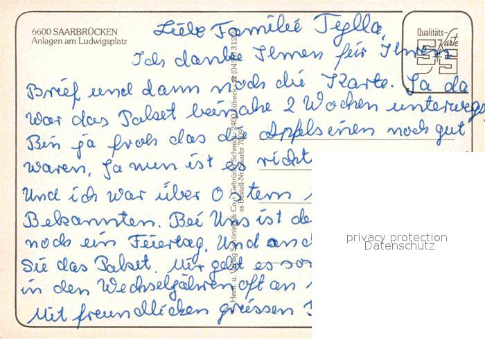 72616801 SAARBRueCKEN Saarland Anlagen am Ludwigsplatz postalisch nicht gelaufen Erhaltung siehe scans [WerneD78] KatCode: 11110010041100