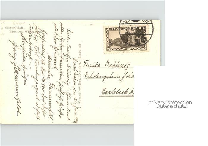 71850235 alte Postkarte SAARBRueCKEN Saarland Blick vom Winterberg postalisch gelaufen Erhaltung siehe scans KatCode: 11110010041100