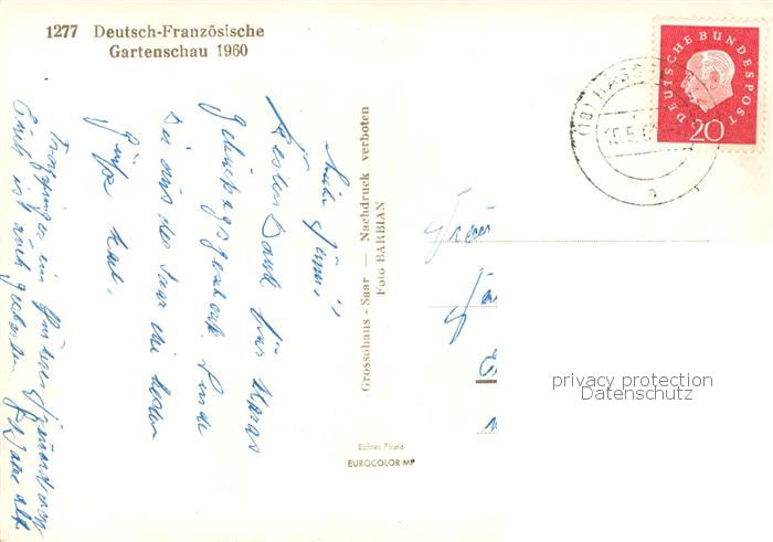 73835516 SAARBRueCKEN Saarland Deutsch Franzoesische Gartenschau 1960 postalisch gelaufen Erhaltung siehe scans [WerneD78] alte Postkarte Wern Katcode 11110010041100