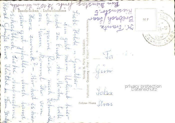 72283130 alte Postkarte SAARBRueCKEN Saarland Fliegeraufnahme postalisch gelaufen Erhaltung siehe scans KatCode: 11110010041100