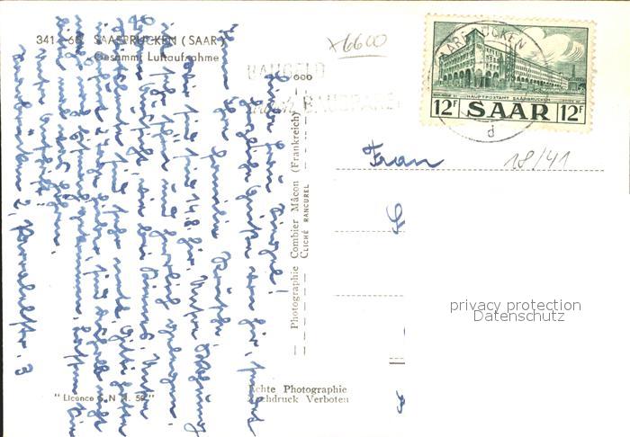 41792454 SAARBRueCKEN Saarland Fliegeraufnahme postalisch gelaufen Erhaltung siehe scans Alte Ansichtskarte Postkarte alte Postkarte Nata Katcode 11110010041100