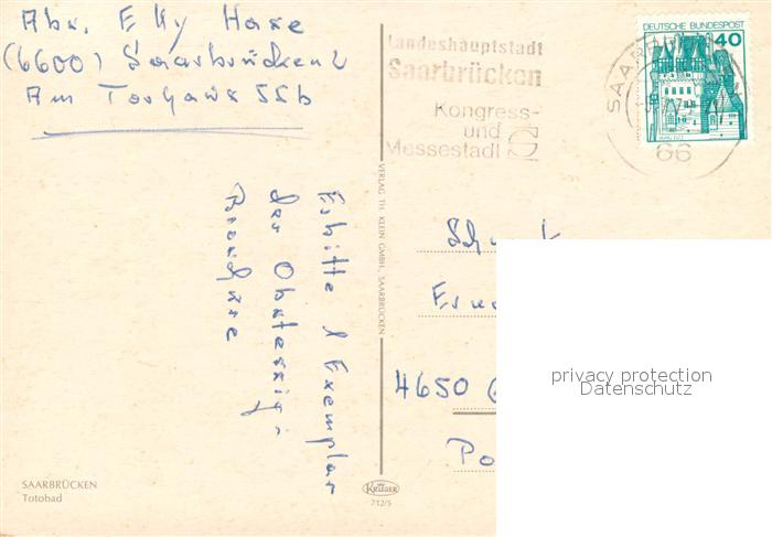 73648816 SAARBRueCKEN Saarland Freibad mit Sprungturm postalisch gelaufen Erhaltung siehe scans [WerneD78] alte Postkarte Wern Katcode 11110010041100