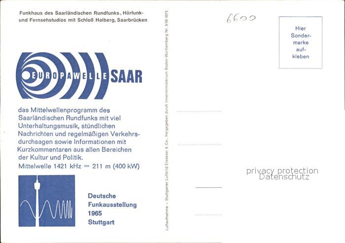 72052883 SAARBRueCKEN Saarland Funkhaus Saarlaendischer Rundfunk Schloss Halberg Fliegeraufnahme Funkausstellung Stuttgart postalisch nicht gelaufen Erhaltung siehe scans KatCode: 11110010041100