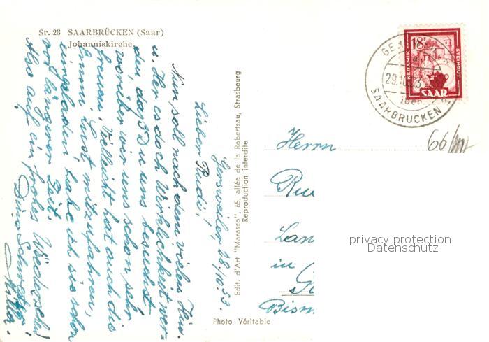 73804449 SAARBRueCKEN Saarland Johanniskirche postalisch gelaufen Erhaltung siehe scans [WerneD78] alte Postkarte Wern Katcode 11110010041100