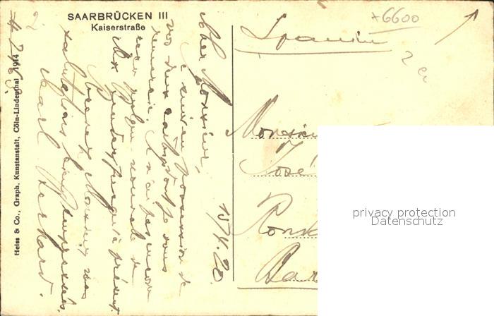 41786378 alte Postkarte SAARBRueCKEN Saarland Kaiserstrasse Stempel auf AK postalisch gelaufen Erhaltung siehe scans KatCode: 11110010041100