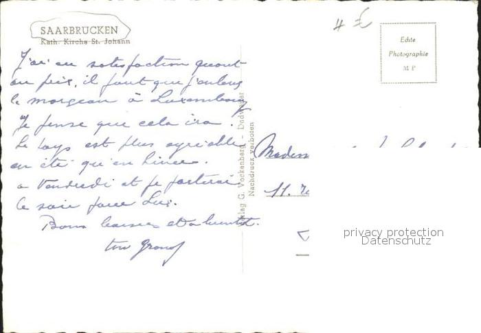 72316294 SAARBRueCKEN Saarland Katholische Kirche Sankt Johann postalisch nicht gelaufen Erhaltung siehe scans KatCode: 11110010041100