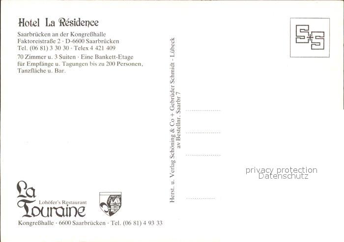 72529473 SAARBRueCKEN Saarland Lohoefers Restaurant La Touraine Hotel La Residence Saarbruecker Gastlichkeit postalisch nicht gelaufen Erhaltung siehe scans KatCode: 11110010041100