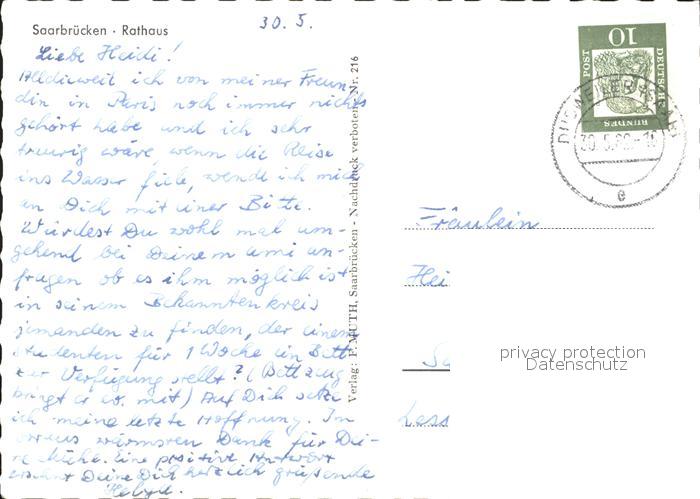 72063551 alte Postkarte SAARBRueCKEN Saarland Rathaus postalisch gelaufen Erhaltung siehe scans KatCode: 11110010041100