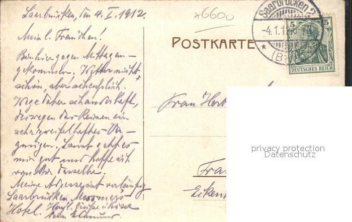 41756886 alte Postkarte SAARBRueCKEN Saarland Rathaus mit Telemachusbrunnen postalisch gelaufen Erhaltung siehe scans KatCode: 11110010041100