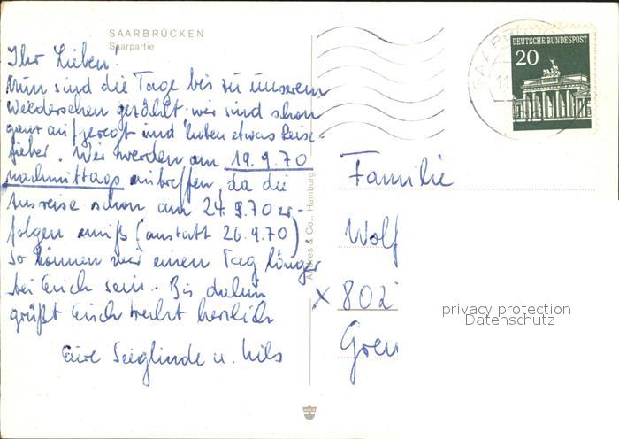 72353960 alte Postkarte SAARBRueCKEN Saarland Saarpartie Frachtschiffe postalisch gelaufen Erhaltung siehe scans KatCode: 11110010041100