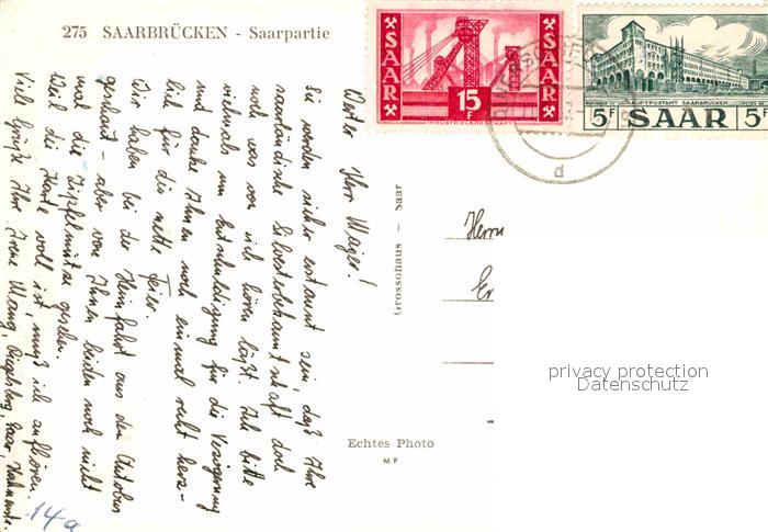72766131 alte Postkarte SAARBRueCKEN Saarland Saarpartie postalisch gelaufen Erhaltung siehe scans [LiesaD40] KatCode: 11110010041100