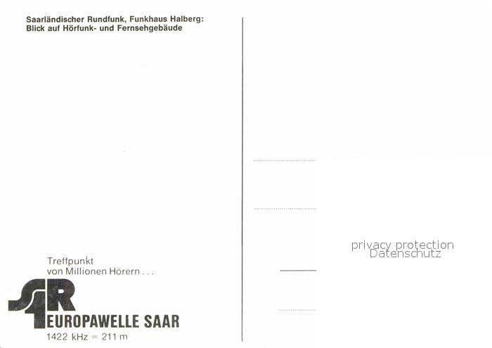 72699467 SAARBRueCKEN Saarland SR Funkhaus Halberg Hoerfunk und Fernsehgebaeude postalisch nicht gelaufen Erhaltung siehe scans [WerneD78] KatCode: 11110010041100