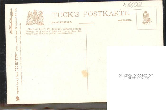 41961052 SAARBRueCKEN Saarland St Johann Johanniskirche Kuenstlerkarte postalisch nicht gelaufen Erhaltung siehe scans KatCode: 11110010041100